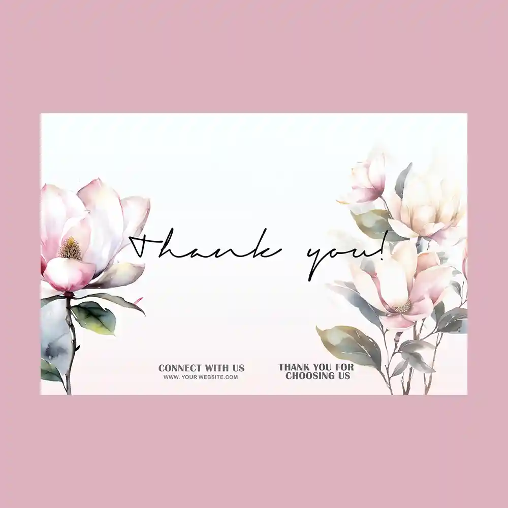 Surprinde-ți clienții cu un gest elegant! Cardurile noastre de mulțumire sunt imprimate pe hârtie foto mată premium, în format 10×15 cm, cu text și design personalizat la alegerea ta. Ideale pentru a fi incluse în colete, pungi cadou sau comenzi online. Preț: doar 1 leu/bucată. Comandă minimă: 50 bucăți.